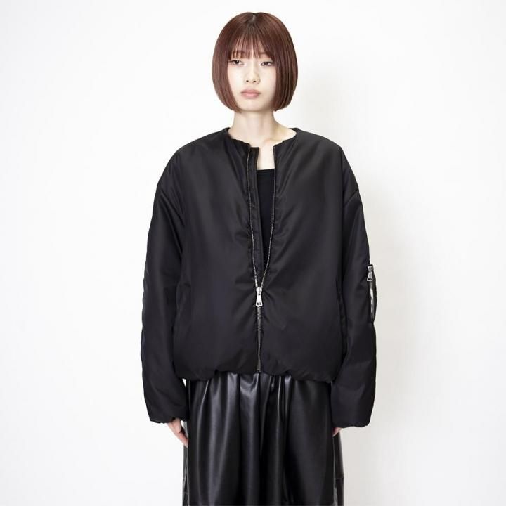 ノーカラー仕様になっているので、モダンでスタイリッシュな印象を求める方におすすめのジャケット。ブラックのテクニカルファブリックを使用し、都会的で洗練された雰囲気を演出します。ボリューム感のあるワイドシルエットは、着るだけで旬なスタイリングが完成。袖口のジップポケットやボックスカットのステッチなど、ディテールまで妥協なし。細部に光るこだわりが、ファッショニスタ心をくすぐります。