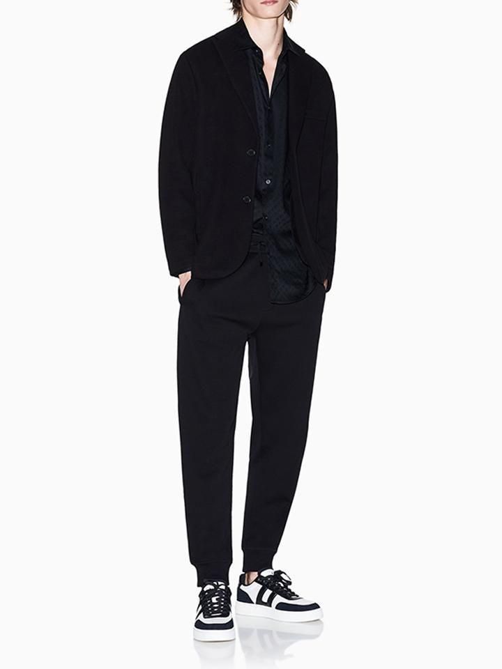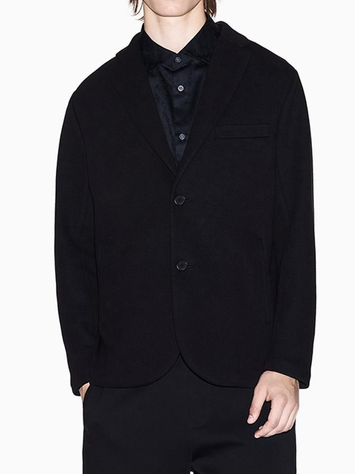 シルエットは身体のラインに自然に沿うスマートなカッティングで、すっきりとした印象を与えながらも窮屈さを感じさせない着心地を実現。袖口やラペル、背面の縫製にもこだわり、細部までアルマーニならではの上品さとモダンさが宿ります。