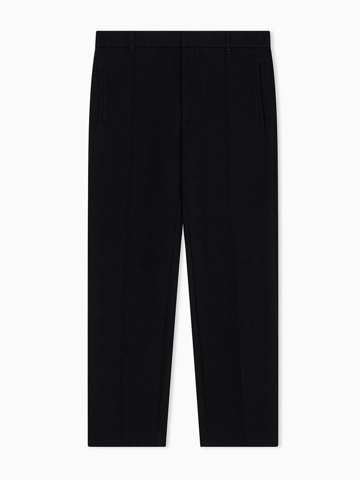 程よいハリと上品な表情を備えたボンデッドピケ素材で仕立てた、ミニマルデザインのパンツ。クリーンなシルエットと無駄のないデザインで、どのようなスタイリングにも自然に馴染み、カジュアルにもビジネスカジュアルにも対応できる汎用性の高い一本です。