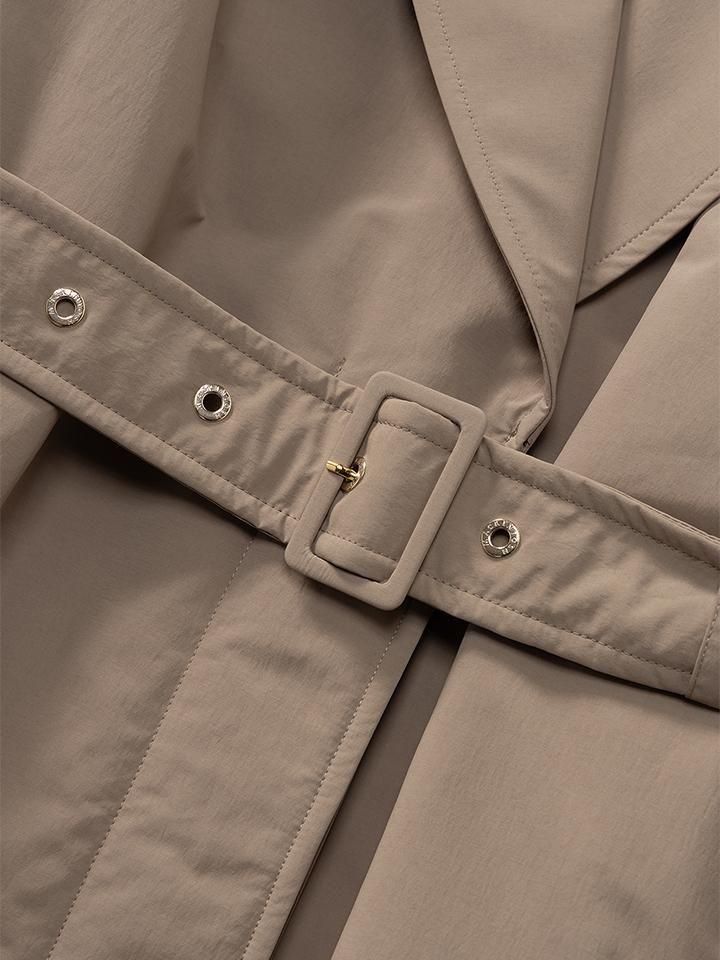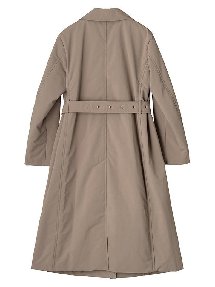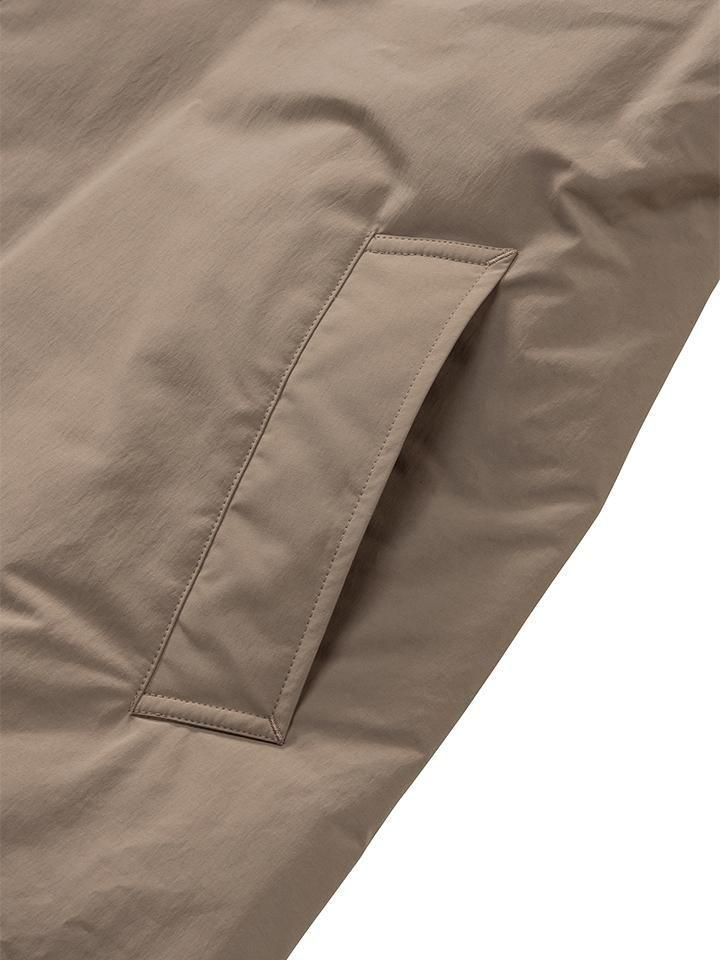 中綿には、防寒性に優れた「THIN DOWN」を採用。軽やかさと暖かさを兼ね備え、真冬でも快適な着心地を叶えます。生地は、熱収縮温度の異なる繊維を組み合わせた特別な糸をタテ糸に使用し、独特のハリと上品なドレープ感を表現。高密度に織り上げられることで、撥水性にも優れています。