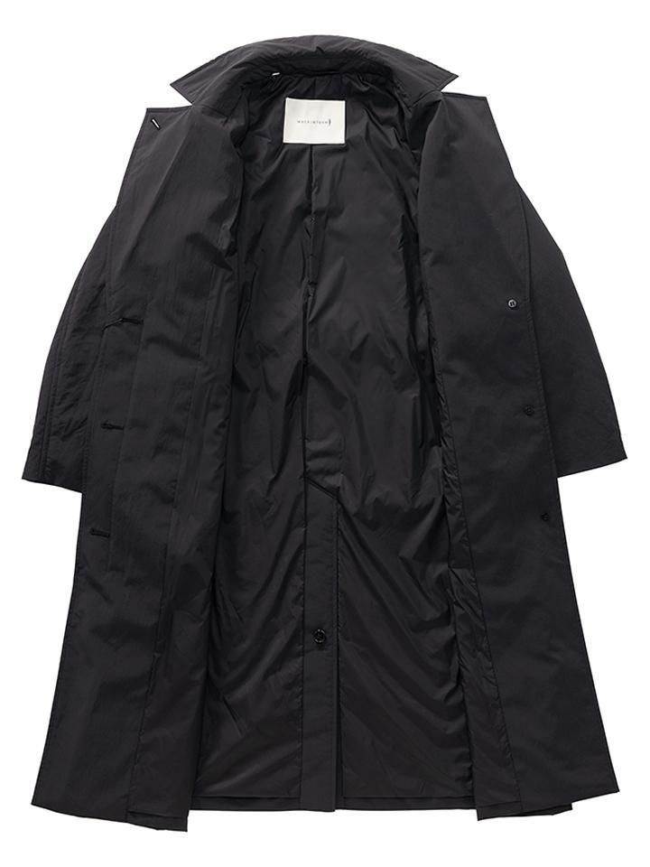 中綿には、防寒性に優れた「THIN DOWN」を採用。軽やかさと暖かさを兼ね備え、真冬でも快適な着心地を叶えます。生地は、熱収縮温度の異なる繊維を組み合わせた特別な糸をタテ糸に使用し、独特のハリと上品なドレープ感を表現。高密度に織り上げられることで、撥水性にも優れています。