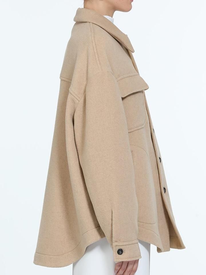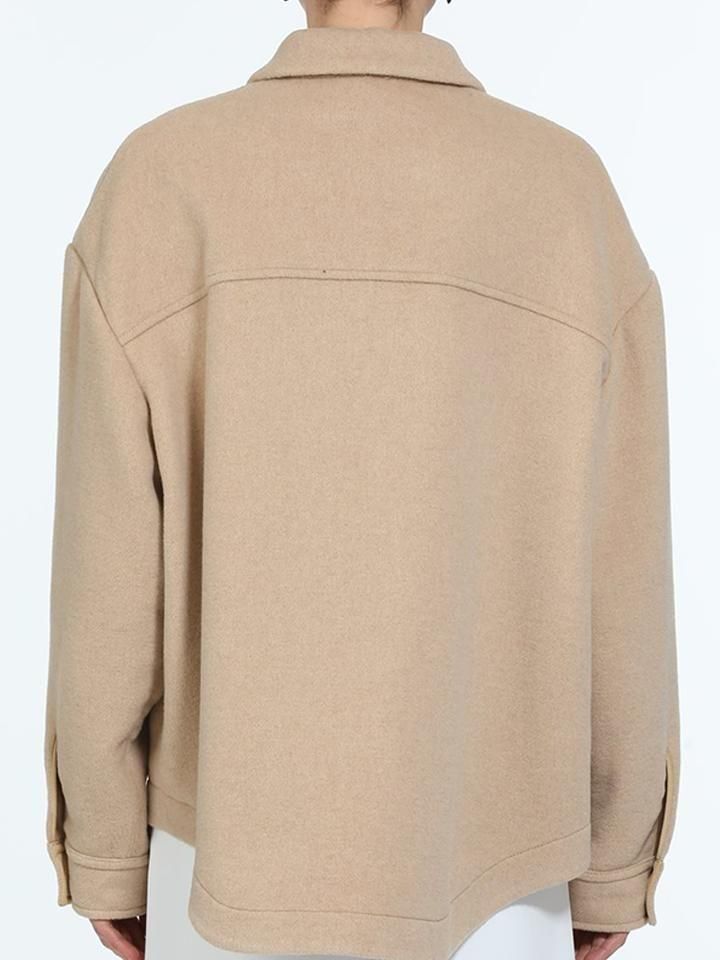 構築的なシルエットとミニマルなディテールが光る、オーバーサイズメルトンジャケット。