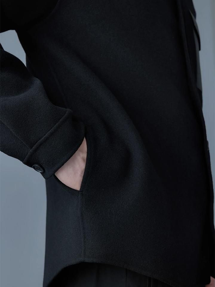 贅沢に使用されたウールのダブルフェイス生地は、驚くほど柔らかく、保温性にも優れており、裏地を必要としない軽やかな仕立て。