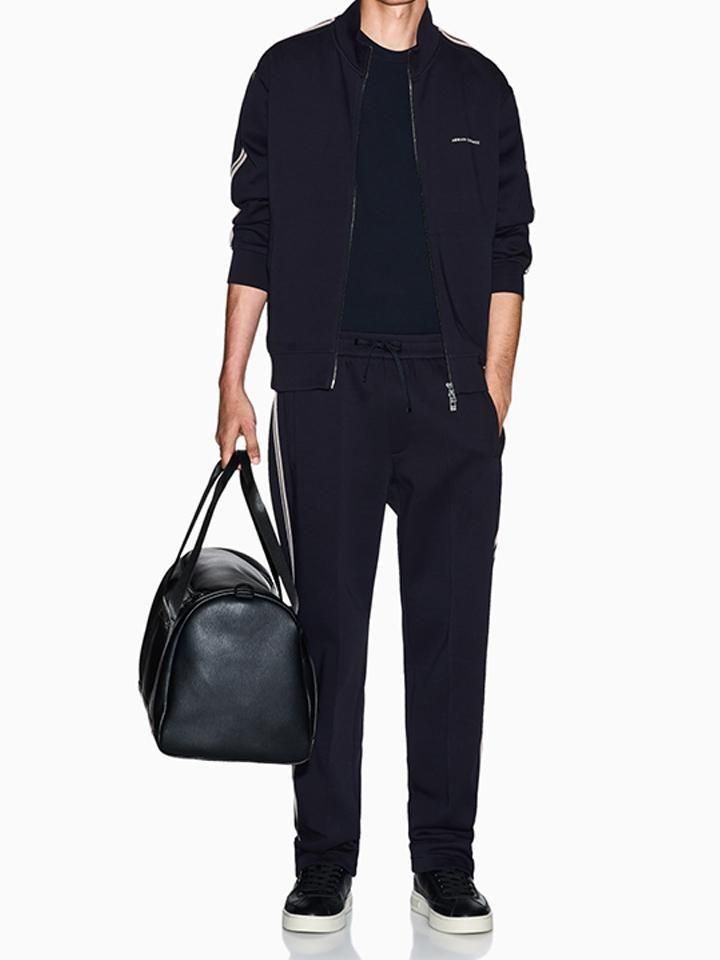 コントラストの効いたサイドストライプがデザインのアクセントとなり、スポーティでありながら洗練された印象に。無駄をそぎ落としたクリーンなディテールと、A|Xらしい都会的なエッセンスが融合し、現代的なライフスタイルに自然と溶け込む一着に仕上がっています。