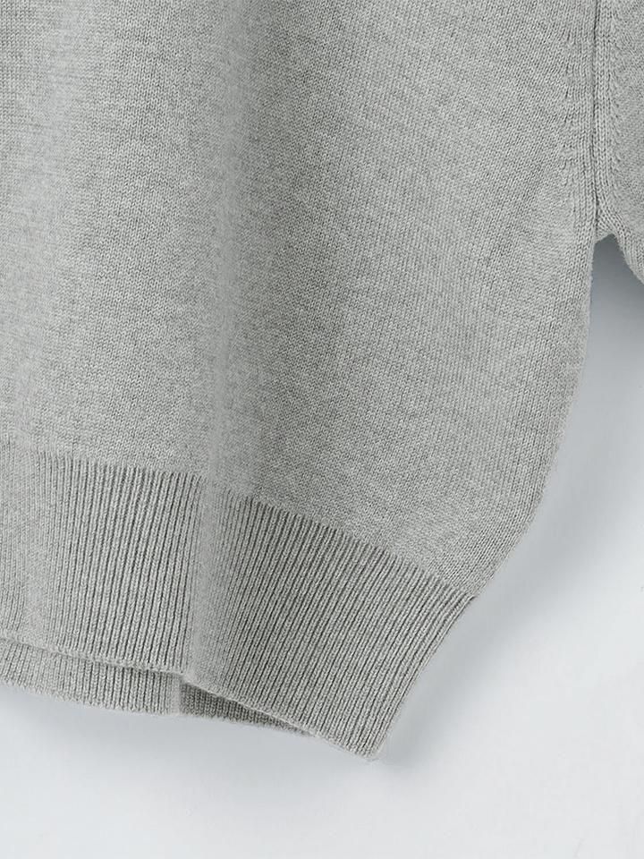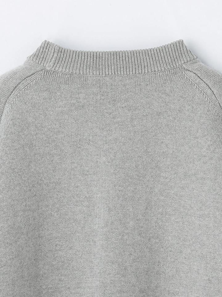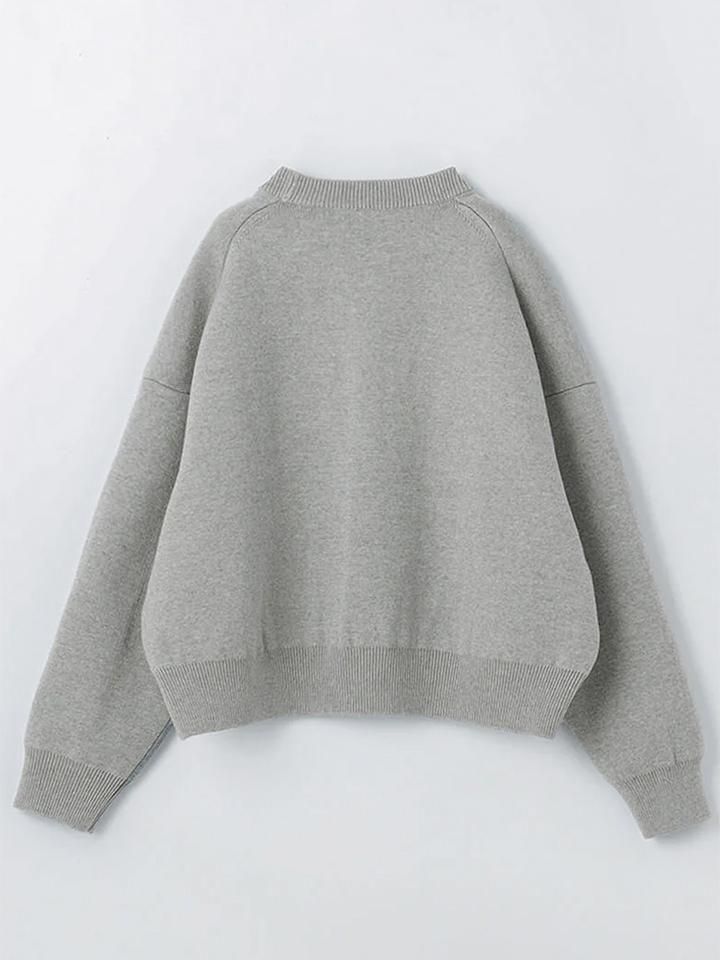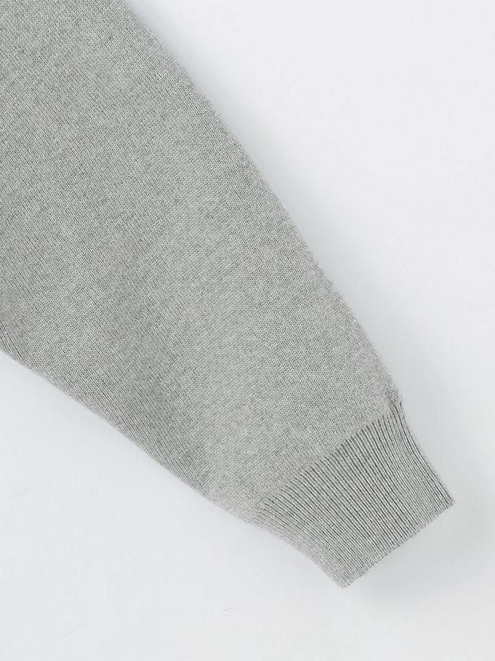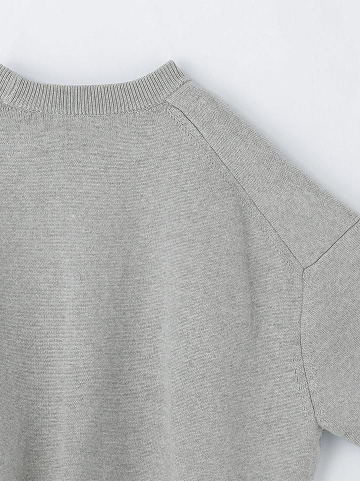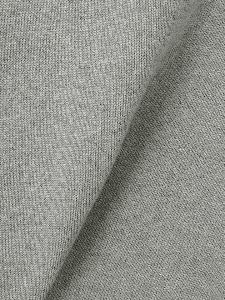 表はカシミアに似た柔らかな風合いを持つ、厳選された繊維長の長いエクストラファインメリノウール、裏は適度な膨らみと伸縮性を持つポリエステルを用い、10ゲージ ダブルフェイス(二重編み)をフルファッション*で丁寧に編み立てたショート丈クルーネック。ウールの柔らかさとポリエステルの張り感がもたらす立体的なフォルム。