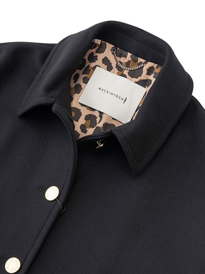 艶があり上質感が伝わってくるメルトンウール生地を採用。密に打ち込まれたメルトンは外気の寒さをしっかりと防ぎつつ、とてもソフトで軽やかな着心地を実現し、日常使いにもやさしい一着に仕上がっています。動いたときにちらりと見える裏地のレオパード柄が、エレガンスなムードをさりげなく演出。