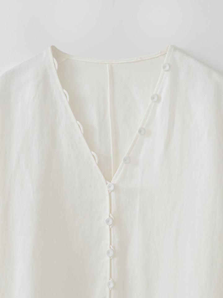 ヴィスコースとリネンをブレンドしたツイル素材で仕立てた、ボタンブラウス。
