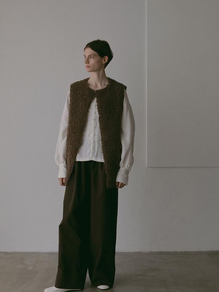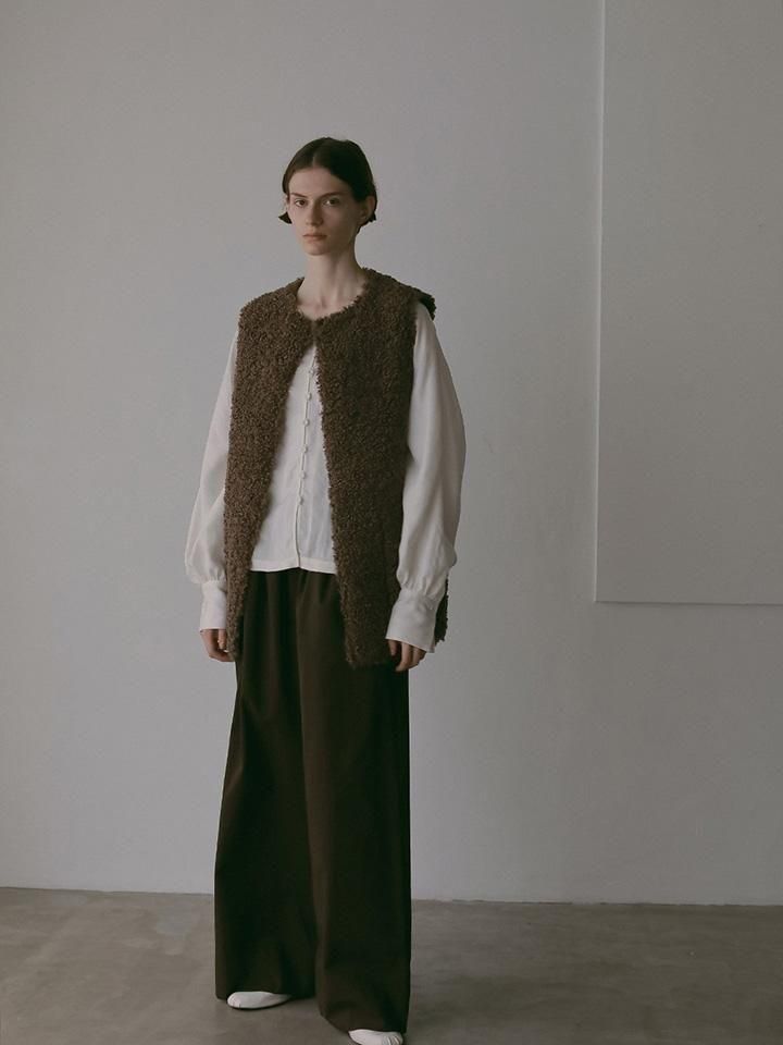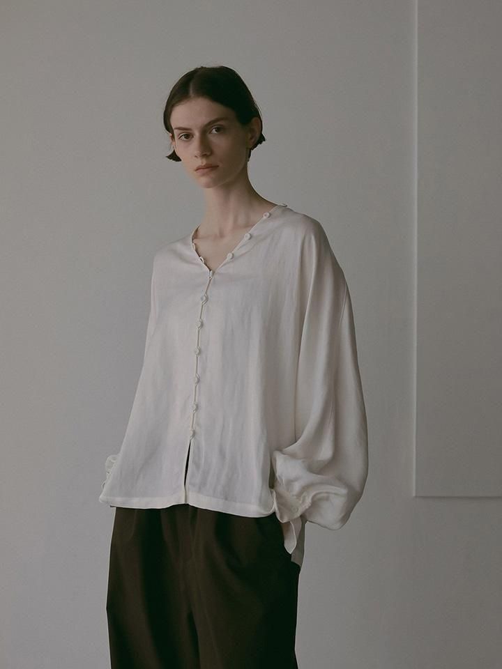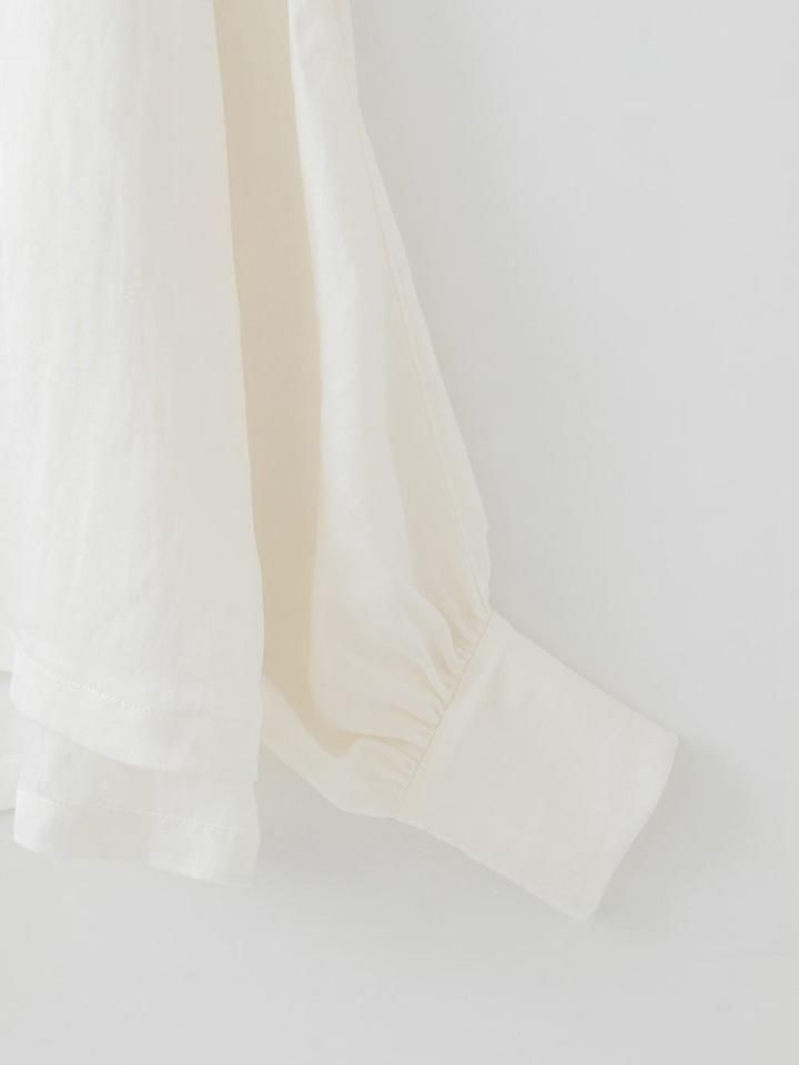 たっぷりとボリュームを持たせたスリーブは、落ち感のある素材によって広がりすぎず、肩まわりをすっきりと見せてくれるバランス。大人のリラックス感を漂わせながらも、上品な印象をキープします。
