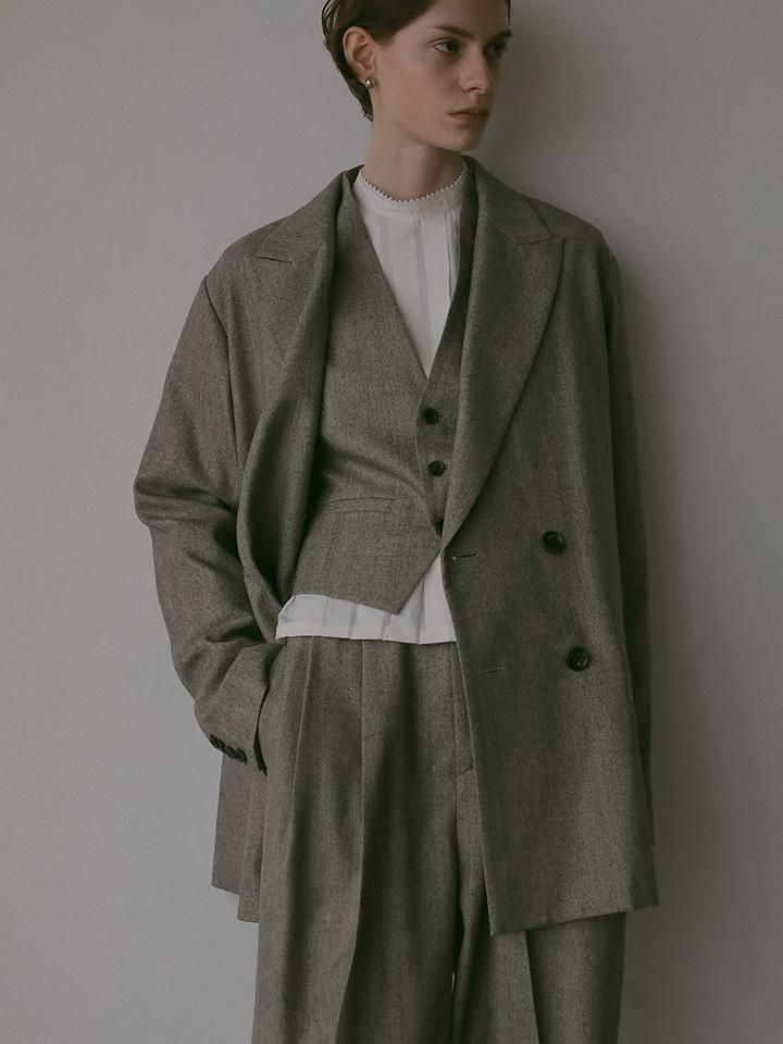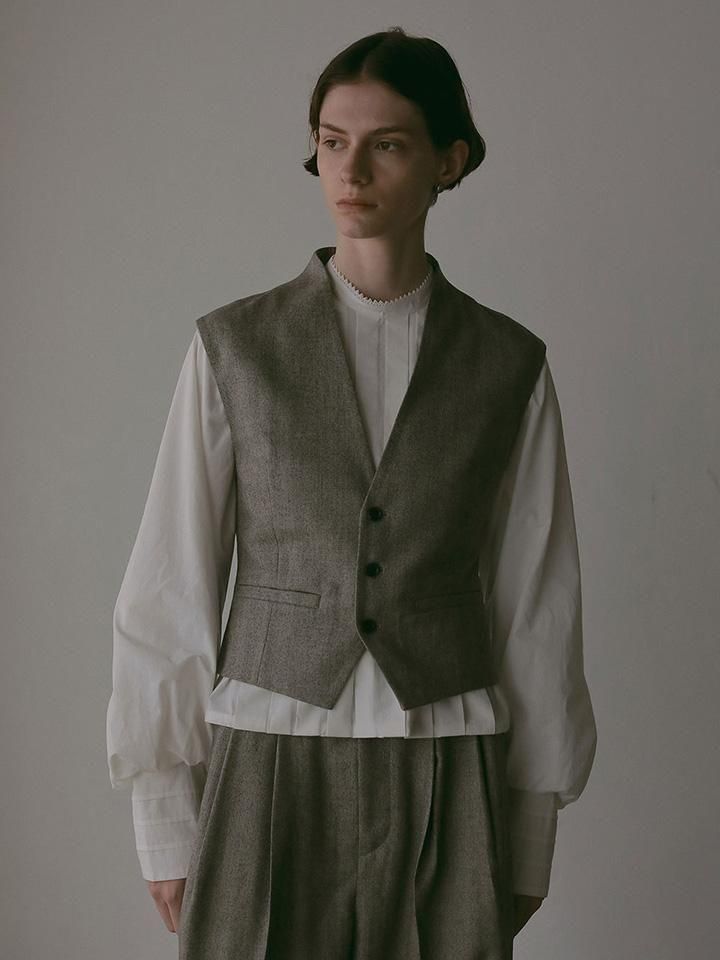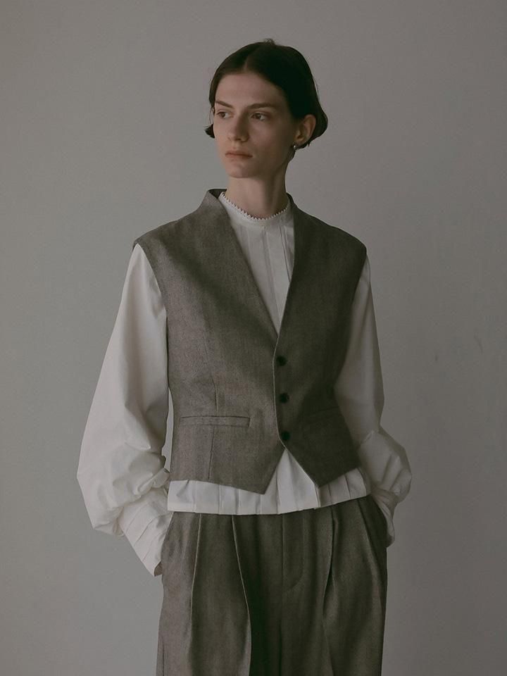 華奢なスタンドカラーは、首元をきれいに見せつつ女性らしさもプラス。ミニマルながらディテールにこだわったデザインで、シンプルなボトムと合わせるだけでもスタイルが完成します。