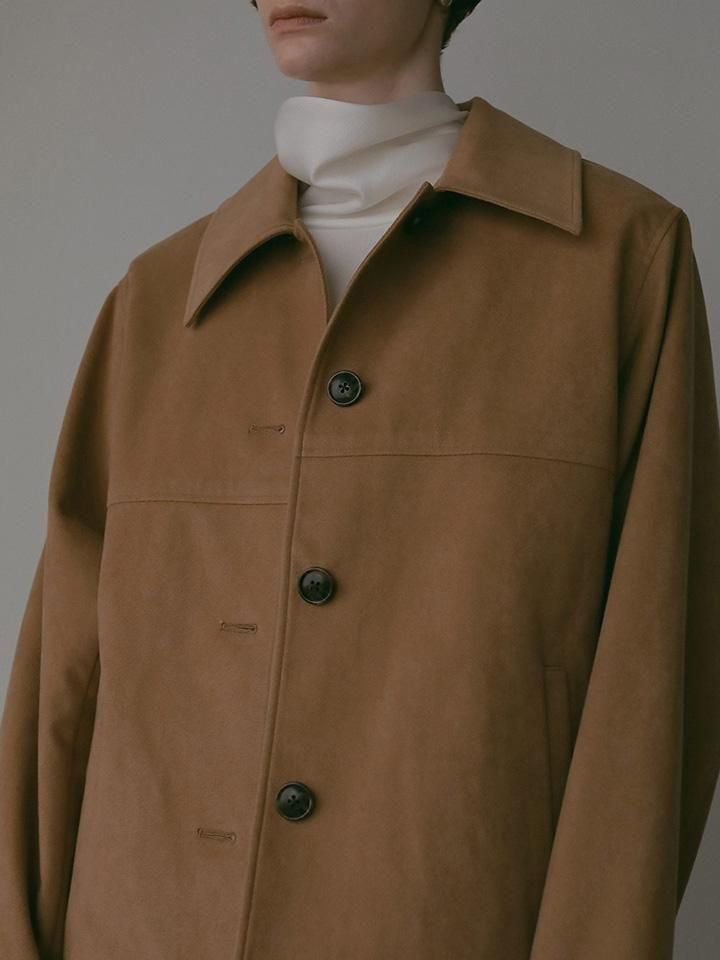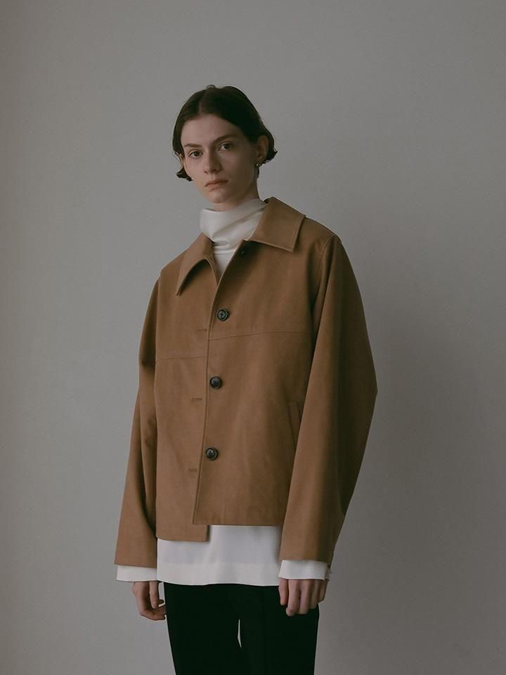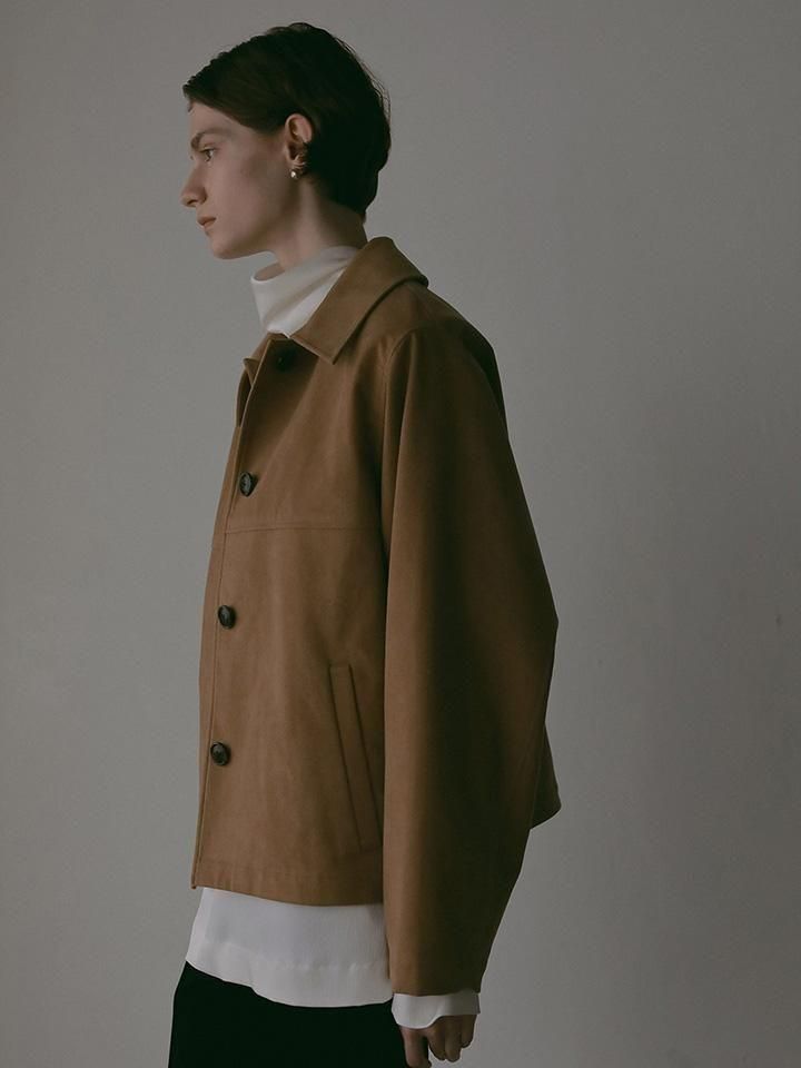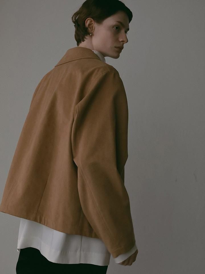 上品な光沢と滑らかな肌触りが魅力の、高品質なフェイクスエードを使用したジャケット。