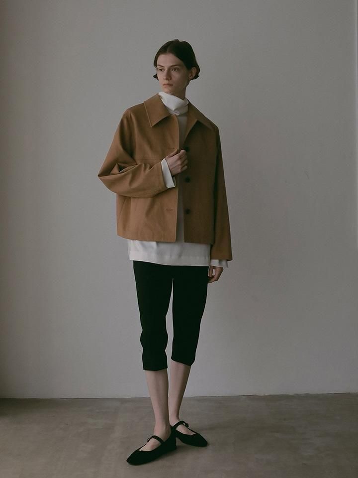 無駄のないミニマルなディテールが素材の美しさを引き立て、さっと羽織るだけで秋らしさを纏える、シーズンムード漂う主役アイテム。トレンド感と実用性を両立した、大人のワードローブに加えたい一枚です。