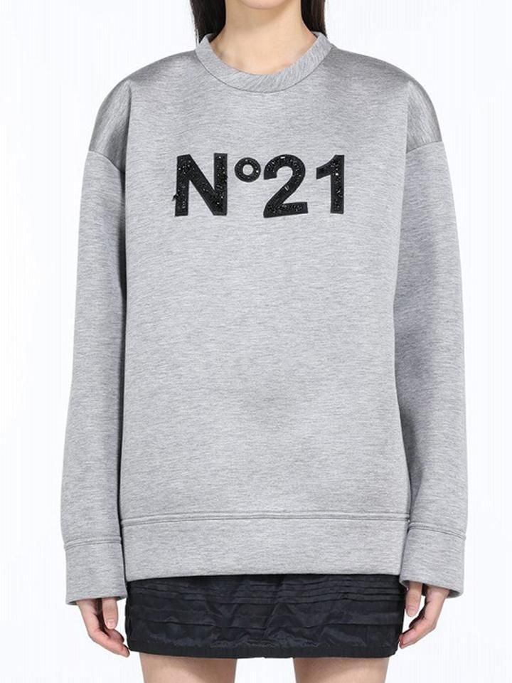 上質なリラックス感を叶える、N°21のスパンコールロゴ入りダンボールニットトップス。