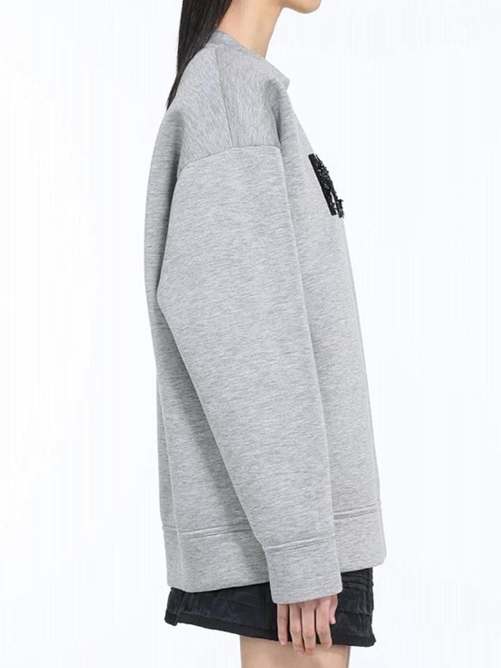 フロントにあしらわれたブランドロゴは、繊細なスパンコールで表現され、さりげないきらめきがスタイリングのアクセントに。