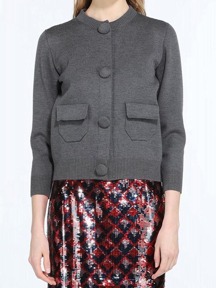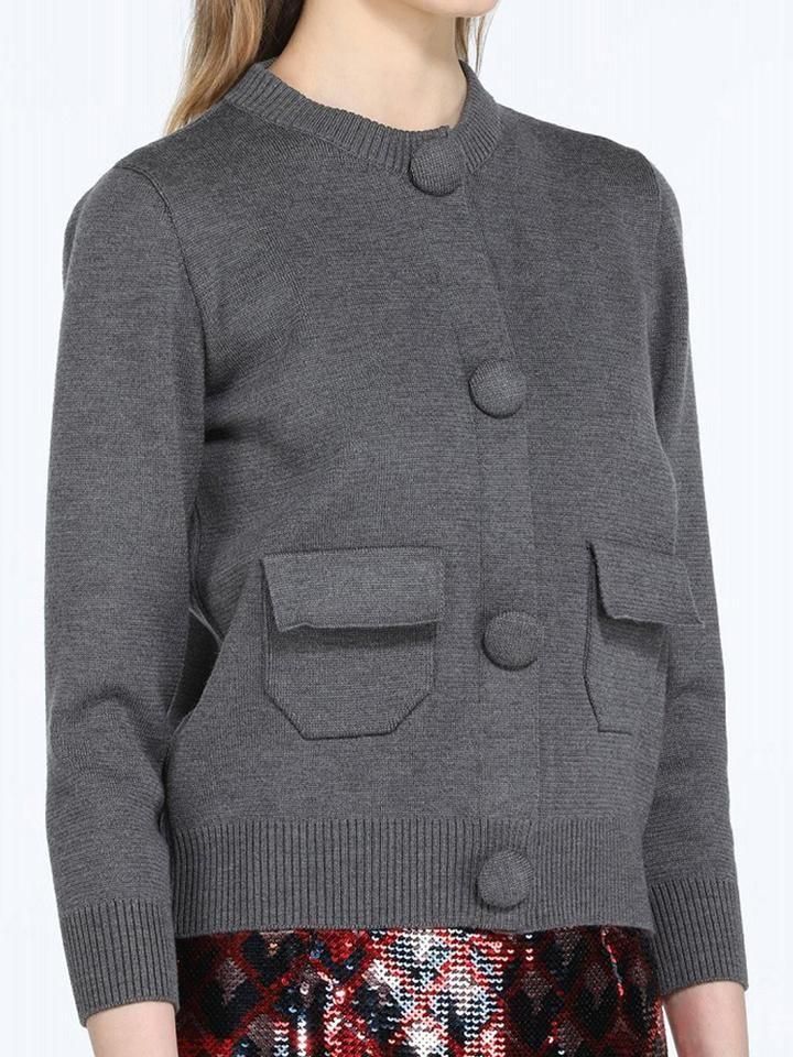 ミニマルな中にさりげない存在感を宿す、フラップポケット付きのクルーネックカーディガン。