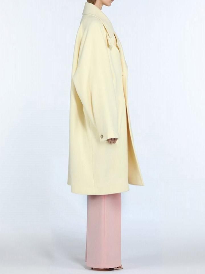 顔まわりを優雅に彩るワイドラペルは、存在感がありながらも上品で、大人の落ち着きを感じさせるポイント。羽織るだけでシンプルなコーディネートを格上げしてくれます。