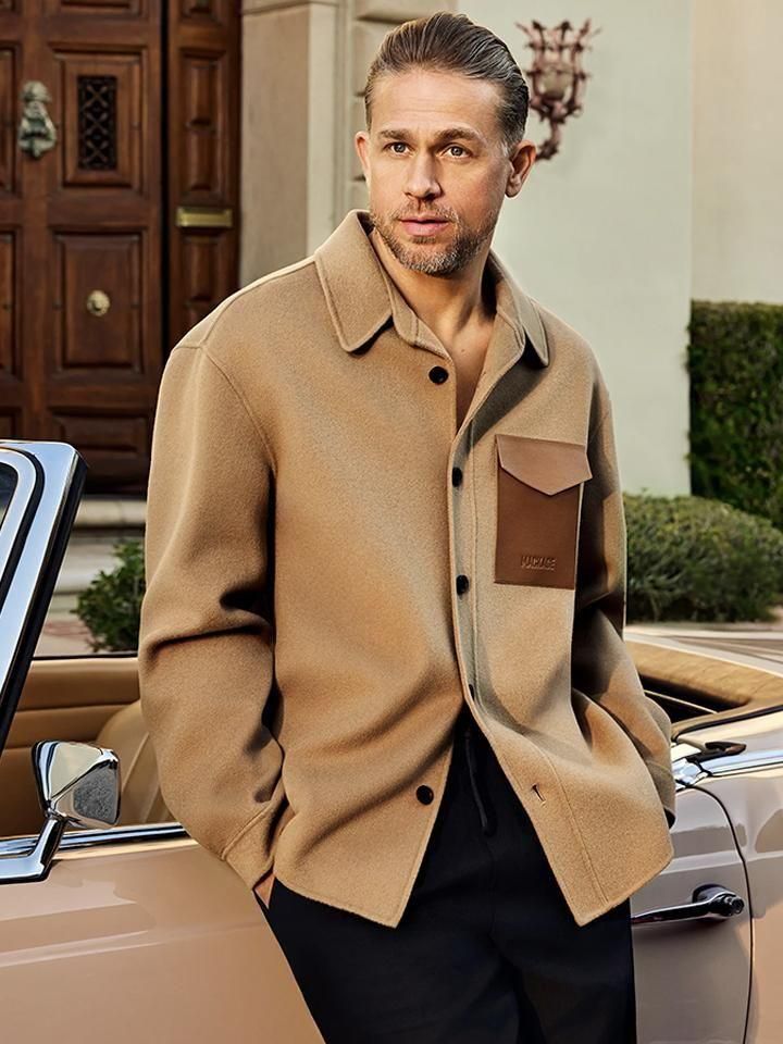 襟はコンバーチブルカラー仕様で、カジュアルからビジネススタイルまで、シーンを選ばず着用できます。胸元にはレザートリムを施したポケットを配置し、シャープで洗練された男らしさを演出。さらに、ポケット部分にはデボス加工によるブランドロゴをさりげなくあしらい、ディテールへのこだわりが光ります。
